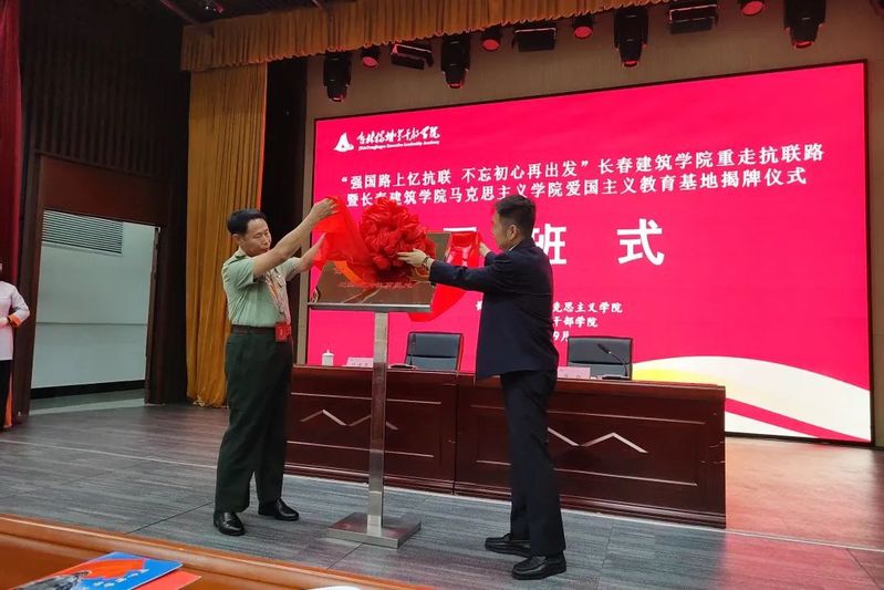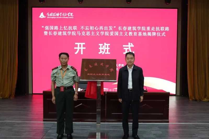 叶万军与吉林杨靖宇干部学院后勤管理服务中心主任徐旭为共同为基地揭牌。共建爱国主义教育实践基地,是学校马克思主义学院依托吉林丰富的红色文化资源,搭建对青年学生思想政治教育、爱国主义教育、社会实践教育平台,增强思政课实践教学育人效果的实质性举措。基地启用标志着学校大思政教育体系中实践教育教学平台的完善,将为学校更生动、更深入地开展爱国主义教育、文化大讲堂等活动提供广阔的平台。