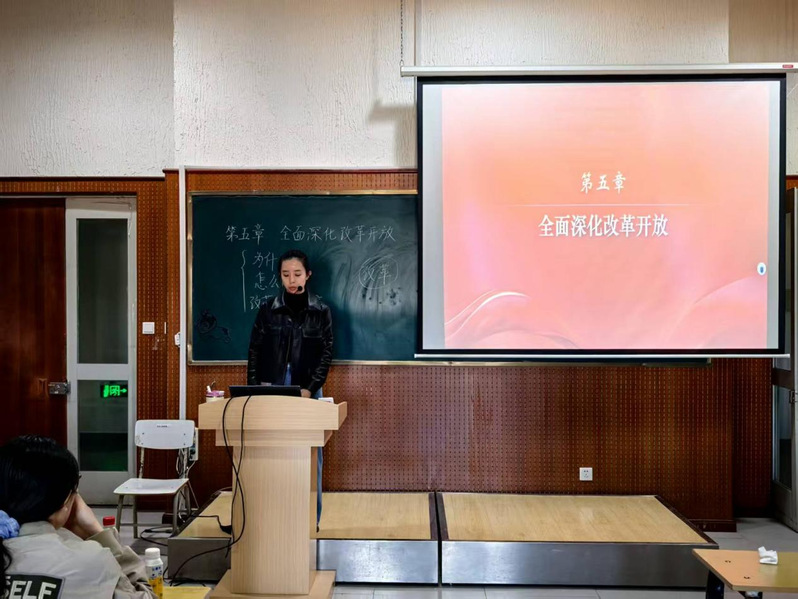 本次观摩课由新教师马艺丹老师主讲,授课内容为课程第五章全面深化改革开放。课堂上,马艺丹老师思路清晰,紧扣课程核心知识点,结合理论内涵与时代背景展开细致讲解。作为青年教师,马艺丹老师授课状态饱满、热情积极,教学语言生动鲜活,善于调动课堂互动,有效活跃课堂氛围,充分激发学生课堂参与积极性,让思政理论课堂更具吸引力与感染力,展现出良好的课堂把控能力与教学素养。